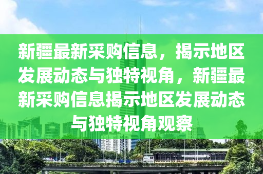 新疆地區(qū)的采購信息引起了廣泛關(guān)注,本文將從新聞報道的視角出發(fā),結(jié)合個人見解,對新疆的最新采購信息進(jìn)行深入分析。