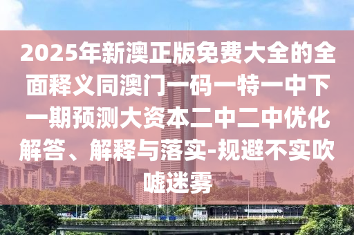 2025年新澳正版免費大全的全面釋義同澳門一碼一特一中下一期預測大資本二中二中優(yōu)化解答、解釋與落實-規(guī)避不實吹噓迷霧