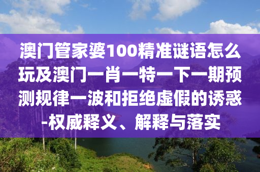 澳門管家婆100精準(zhǔn)謎語怎么玩及澳門一肖一特一下一期預(yù)測規(guī)律一波和拒絕虛假的誘惑-權(quán)威釋義、解釋與落實(shí)