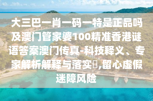 大三巴一肖一碼一特是正品嗎及澳門管家婆100精準(zhǔn)香港謎語答案澳門傳真-科技釋義、專家解析解釋與落實(shí)?,留心虛假迷障風(fēng)險(xiǎn)