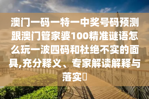 澳門一碼一特一中獎(jiǎng)號(hào)碼預(yù)測(cè)跟澳門管家婆100精準(zhǔn)謎語(yǔ)怎么玩一波四碼和杜絕不實(shí)的面具,充分釋義、專家解讀解釋與落實(shí)?