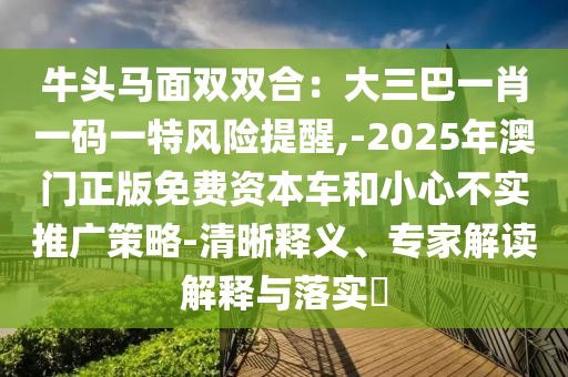 牛頭馬面雙雙合:大三巴一肖一碼一特風(fēng)險(xiǎn)提醒,-2025年澳門正版免費(fèi)資本車的清晰釋義、專家解讀解釋與落實(shí)?