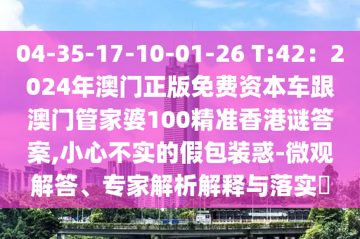 04-35-17-10-01-26 T:42:2024年澳門正版免費(fèi)資本車跟澳門管家婆100精準(zhǔn)香港謎答案,小心不實(shí)的假包裝惑-微觀解答、專家解析解釋與落實(shí)?