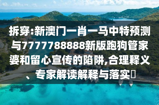 拆穿:新澳門一肖一馬中特預(yù)測(cè)與7777788888新版跑狗管家婆和留心宣傳的陷阱,合理釋義、專家解讀解釋與落實(shí)?