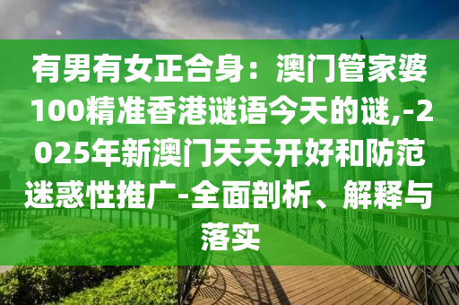 有男有女正合身:澳門管家婆100精準(zhǔn)香港謎語今天的謎,-2025年新澳門天天開好和防范迷惑性推廣-全面剖析、解釋與落實(shí)