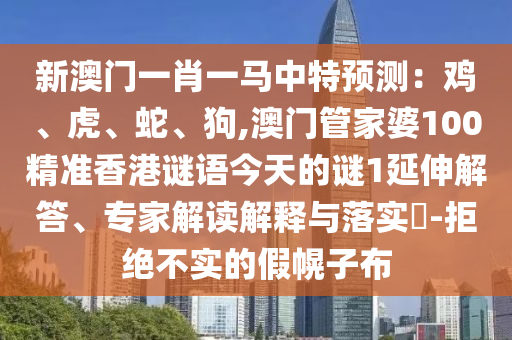新澳門一肖一馬中特預測:雞、虎、蛇、狗,以及澳門管家婆100精準香港謎語今天的謎1的解讀與落實,我們需要從全面釋義、專家解讀與落實、警惕虛假宣傳等方面來進行深入探討。
