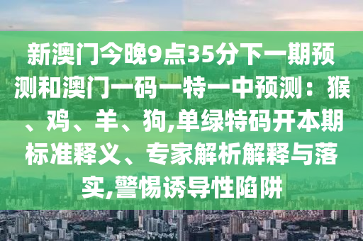 新澳門今晚9點35分下一期預測和澳門一碼一特一中預測:猴、雞、羊、狗,單綠特碼開本期標準釋義、專家解析解釋與落實,警惕誘導性陷阱