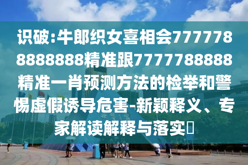 牛郎織女喜相會7777788888888精準(zhǔn)跟7777788888精準(zhǔn)一肖預(yù)測方法的檢舉:新穎釋義、專家解讀解釋與落實?