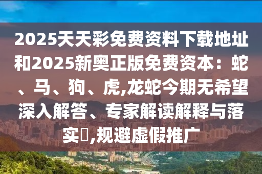 2025天天彩免費(fèi)資料下載地址和2025新奧正版免費(fèi)資本:蛇、馬、狗、虎,龍蛇今期無(wú)希望深入解答、專(zhuān)家解讀解釋與落實(shí)?,規(guī)避虛假推廣
