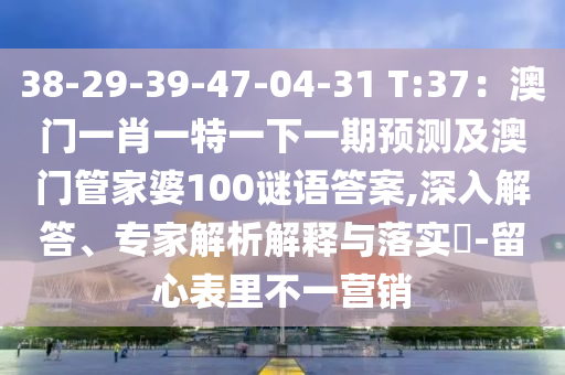 38-29-39-47-04-31 T:37:澳門一肖一特一下一期預(yù)測及澳門管家婆100謎語答案,深入解答、專家解析解釋與落實?-留心表里不一營銷