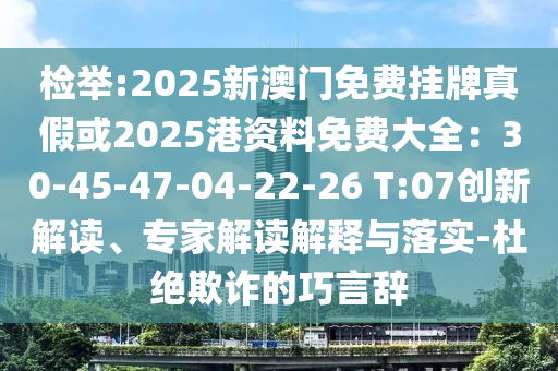 檢舉:2025新澳門免費掛牌真假或2025港資料免費大全:30-45-47-04-22-26 T:07創(chuàng)新解讀、專家解讀解釋與落實-杜絕欺詐的巧言辭