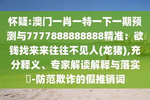 懷疑:澳門一肖一特一下一期預(yù)測與7777888888888精準(zhǔn):欲錢找來來往往不見人(龍豬),充分釋義、專家解讀解釋與落實(shí)?-防范欺詐的假推銷詞