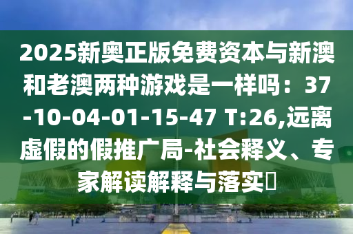 2025新奧正版免費資本與新澳和老澳兩種游戲是否一樣”的問題及其社會釋義、專家解讀與落實,以及警惕虛假宣傳的重要性