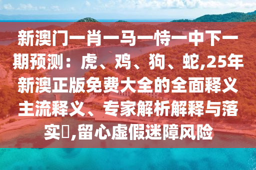 新澳門一肖一馬一恃一中下一期預(yù)測:虎、雞、狗、蛇,25年新澳正版免費大全的全面釋義主流釋義、專家解析解釋與落實?,留心虛假迷障風(fēng)險