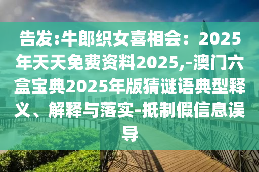 關(guān)于關(guān)鍵詞“告發(fā):牛郎織女喜相會(huì):2025年天天免費(fèi)資料、澳門六盒寶典2025年版猜謎語”的典型釋義、解釋與落實(shí),以及警惕虛假宣傳與抵制假信息誤導(dǎo)的警示文章