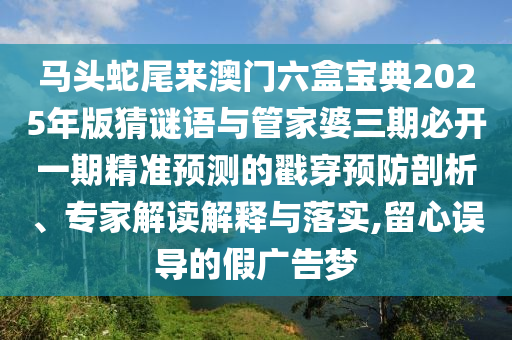 馬頭蛇尾來澳門六盒寶典2025年版猜謎語與管家婆三期必開一期精準(zhǔn)預(yù)測的戳穿預(yù)防剖析、專家解讀解釋與落實(shí),留心誤導(dǎo)的假廣告夢