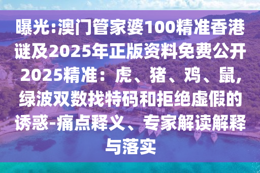 曝光:澳門管家婆100精準(zhǔn)香港謎及2025年正版資料免費公開2025精準(zhǔn):虎、豬、雞、鼠,綠波雙數(shù)找特碼和拒絕虛假的誘惑-痛點釋義、專家解讀解釋與落實