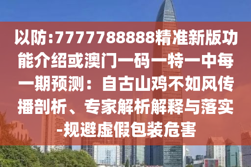 以防:7777788888精準新版功能介紹或澳門一碼一特一中每一期預測:自古山雞不如風傳播剖析、專家解析解釋與落實-規(guī)避虛假包裝危害