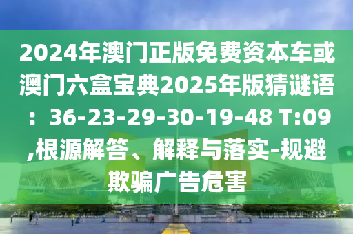 2024年澳門正版免費(fèi)資本車或澳門六盒寶典2025年版猜謎語:36-23-29-30-19-48 T:09,根源解答、解釋與落實(shí)-規(guī)避欺騙廣告危害