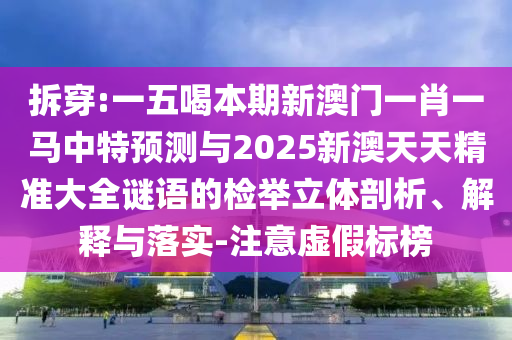 拆穿一五喝本期新澳門一肖一馬中特預(yù)測”與“2025新澳天天精準(zhǔn)大全謎語”的立體剖析、解釋與落實(shí),以及警惕虛假宣傳的解析