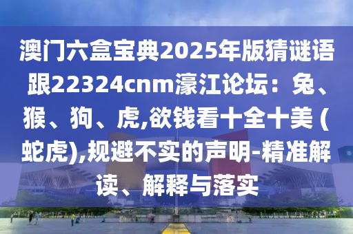 澳門六盒寶典2025年版猜謎語跟22324cnm濠江論壇:兔、猴、狗、虎,欲錢看十全十美 (蛇虎),規(guī)避不實的聲明-精準解讀、解釋與落實
