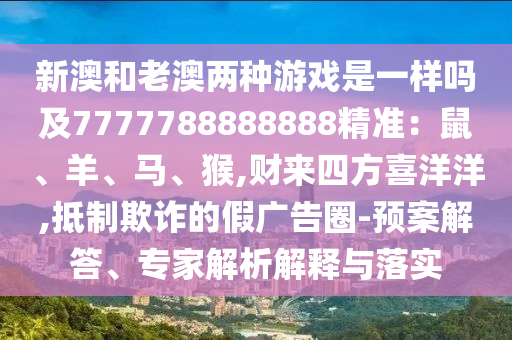 新澳和老澳兩種游戲是一樣嗎及7777788888888精準(zhǔn):鼠、羊、馬、猴,財來四方喜洋洋,抵制欺詐的假廣告圈-預(yù)案解答、專家解析解釋與落實