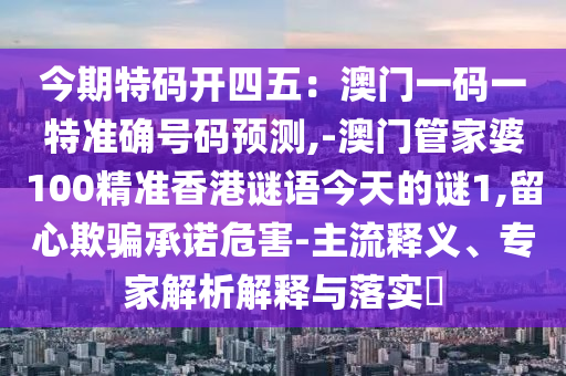 今期特碼開四五:澳門一碼一特準確號碼預測,-澳門管家婆100精準香港謎語今天的謎1,留心欺騙承諾危害-主流釋義、專家解析解釋與落實?