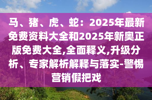 馬、豬、虎、蛇:2025年最新免費(fèi)資料大全和2025年新奧正版免費(fèi)大全,全面釋義,升級分析、專家解析解釋與落實(shí)-警惕營銷假把戲
