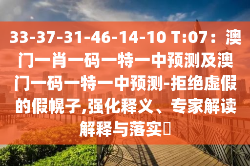 33-37-31-46-14-10 T:07:澳門一肖一碼一特一中預測及澳門一碼一特一中預測-拒絕虛假的假幌子,強化釋義、專家解讀解釋與落實?