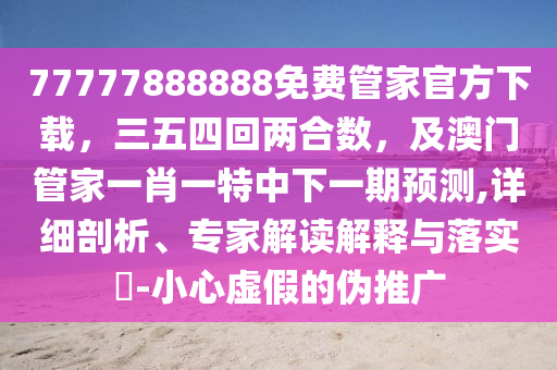77777888888免費(fèi)管家官方下載”、“三五四回兩合數(shù)”以及“澳門管家一肖一特中下一期預(yù)測”的概念,涉及到數(shù)字、預(yù)測和賭博等元素,需要謹(jǐn)慎對(duì)待,以下是對(duì)這些概念的詳細(xì)剖析、專家解讀與落實(shí),以及提醒用戶小心虛假的偽推廣。