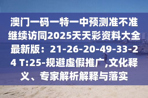 澳門一碼一特一中預(yù)測準不準繼續(xù)訪同2025天天彩資料大全最新版:21-26-20-49-33-24 T:25-規(guī)避虛假推廣,文化釋義、專家解析解釋與落實