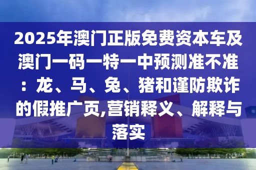 2025年澳門正版免費資本車及澳門一碼一特一中預測準不準:龍、馬、兔、豬和謹防欺詐的假推廣頁,營銷釋義、解釋與落實