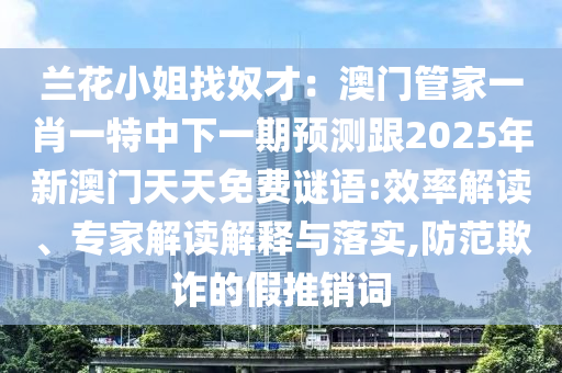 關(guān)于蘭花小姐找奴才、澳門管家一肖一特中下一期預(yù)測(cè)、2025年新澳門天天免費(fèi)謎語(yǔ)效率解讀以及防范欺詐的假推銷詞等關(guān)鍵詞的解釋與落實(shí)