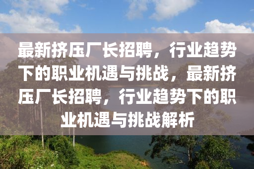 最新擠壓廠長(zhǎng)招聘,行業(yè)趨勢(shì)下的職業(yè)機(jī)遇與挑戰(zhàn),最新擠壓廠長(zhǎng)招聘,行業(yè)趨勢(shì)下的職業(yè)機(jī)遇與挑戰(zhàn)解析